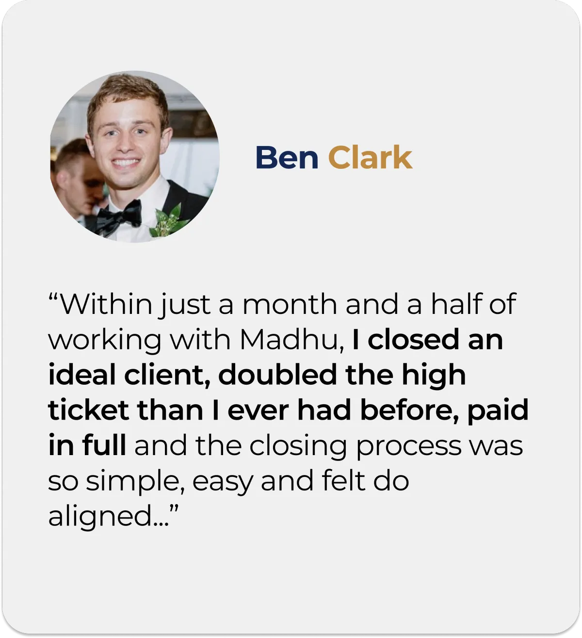 The program is designed to fit into your life without adding stress or overwhelm. It’s about simplifying what you’re already doing and replacing ineffective actions with high-impact strategies. Most clients implement our system in just 4-6 hours per week—and many see results in as little as 30 days.